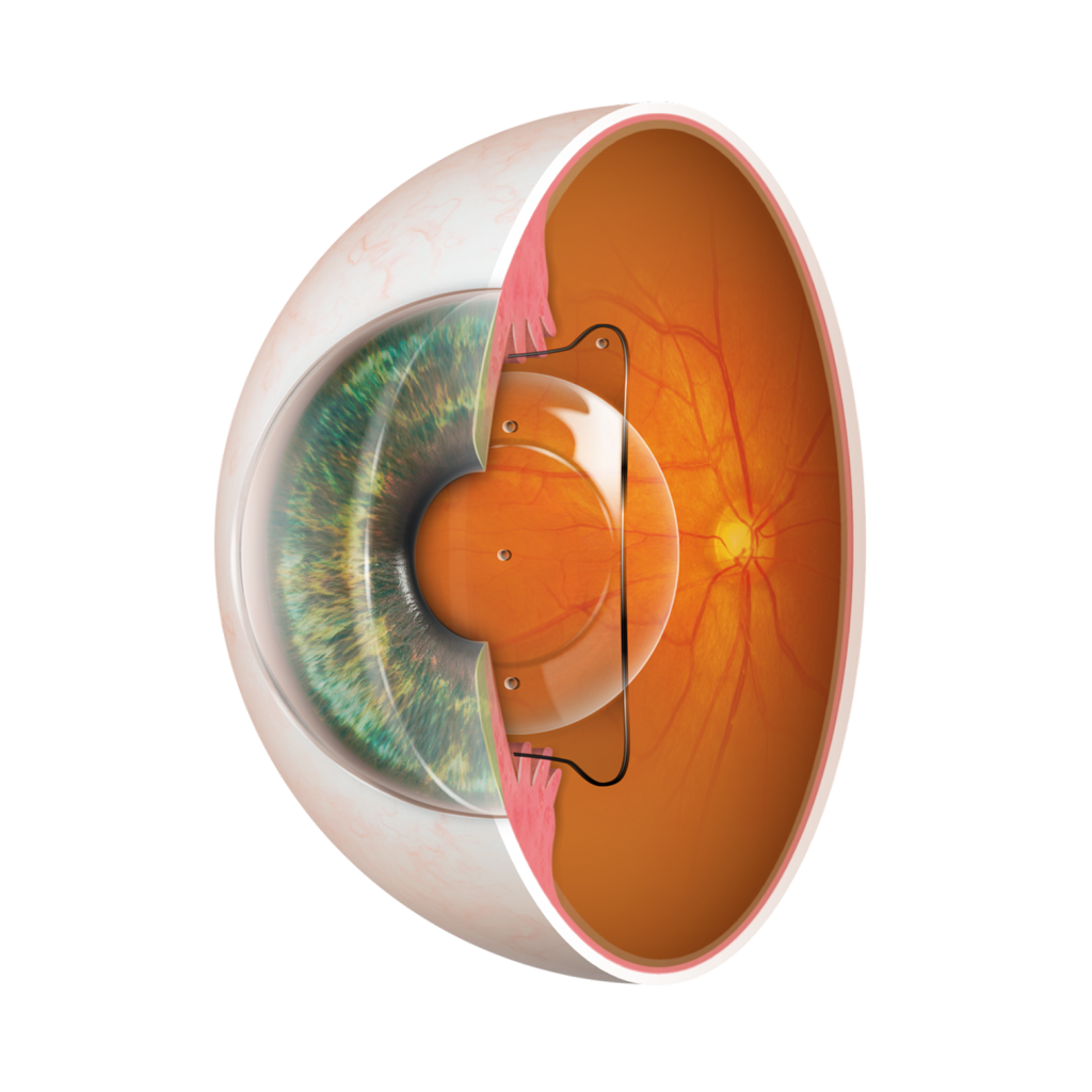 EVO ICL 렌즈삽입술은 렌즈가 홍채 뒤쪽에 위치해 외부에서 보이지 않으며, 눈 속 구조에 접착되지 않아 일반적으로 이물감이 거의 없는 것으로 알려져 있습니다.