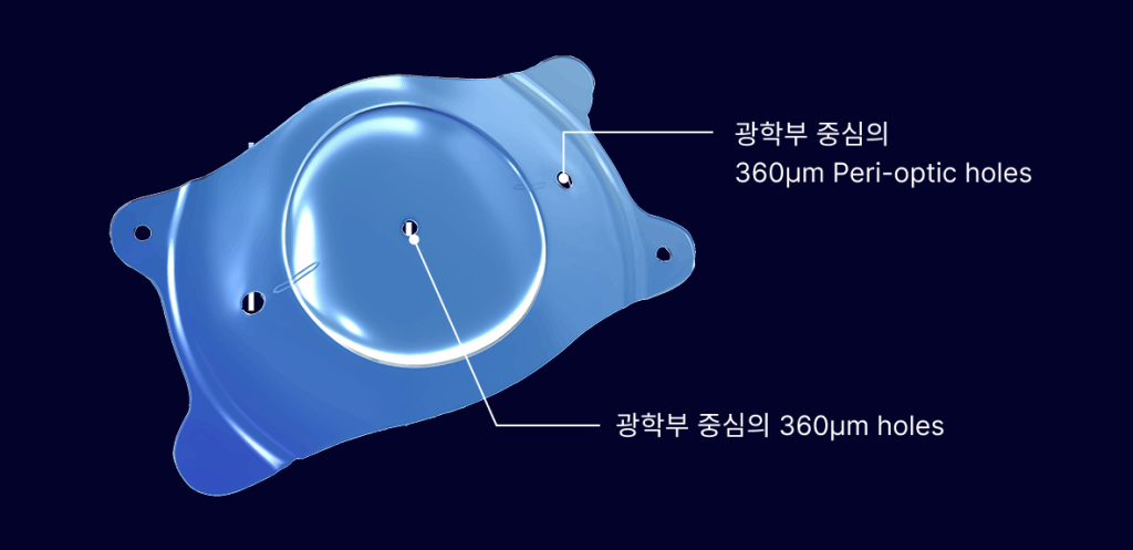 EVO+ ICL은 렌즈 중앙에 360um 크기의 Aquaport™ 4개의 홀이 있어 안구 내 방수가 자연스럽게 순환됩니다. 이는 백내장 발생 위험을 현저히 낮추고 안압 상승을 예방하는 혁신적인 설계입니다.