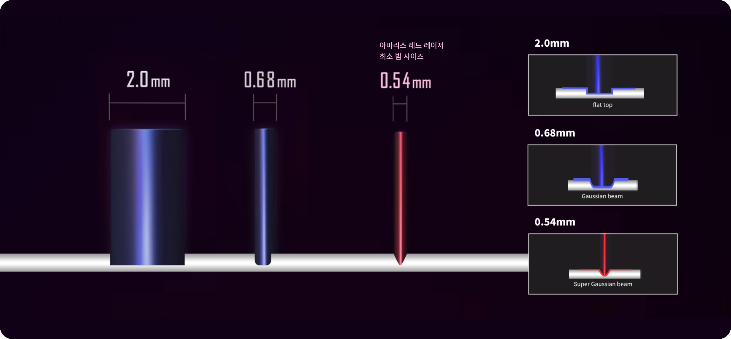 레이저 빔이 작으면 작을수록, 정교하고 매끄럽게 각막면이 연마되며 빔의 크기에 따라 수술 결과가 달라집니다.