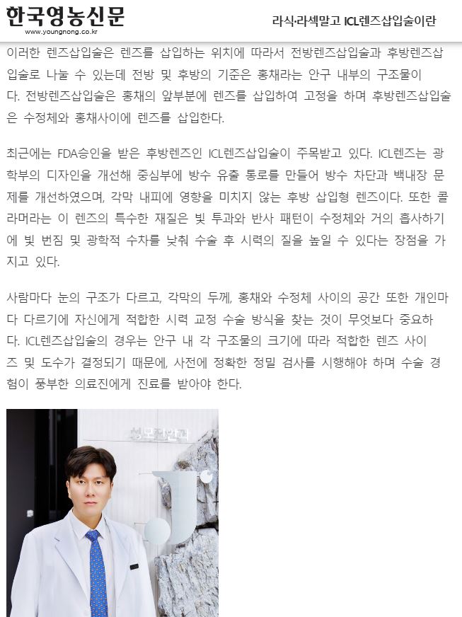 [건강칼럼] 시력교정 라식,라섹말고! ICL렌즈삽입술