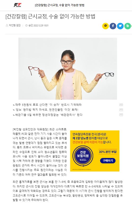 [건강칼럼] 수술없이 가능한 근시교정은?