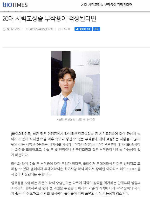 [바이오타임즈] 20대 시력교정술 부작용 걱정?